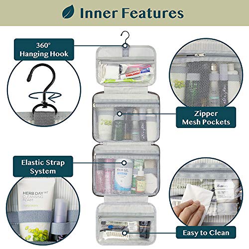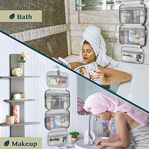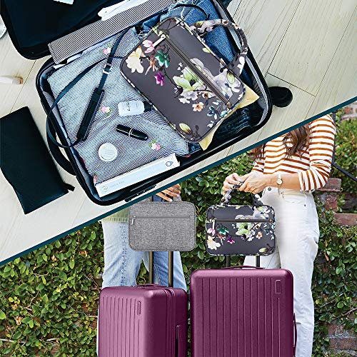 PAVILIA Hanging Toiletry Bag Travel Bag Women Men, Foldable Cosmetic Organizer, Roll up Makeup Bag, Water Resistant Accessories Toiletries, Large Travel Essentials Kit (Grey Floral)