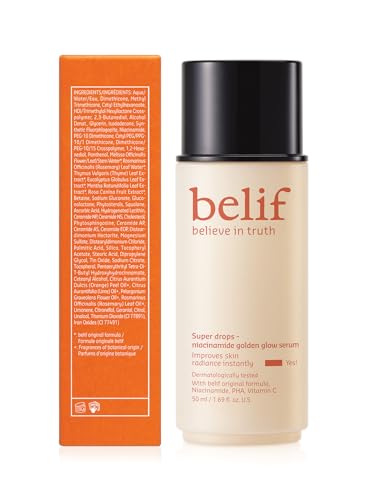 belif Super Drops Niacinamide Vitamin C Golden Glow Serum, 2-in-1 Hydrating Makeup Primer,lluminator and Highlighter to Blur Pores & Even Skin Texture, PHA, Korean Skin Care