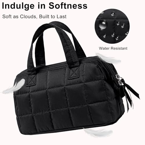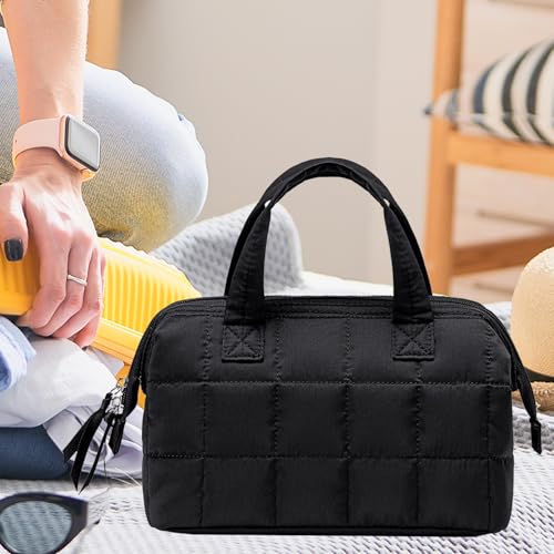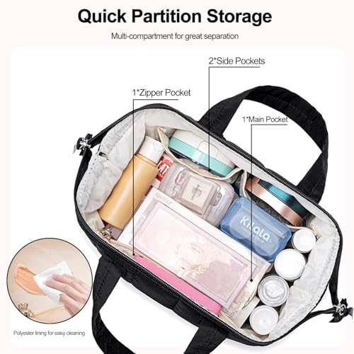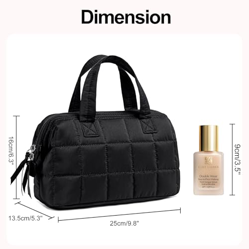 BTOOP Makeup Bag Travel Toiletry Bag for women, Cute Large Make Up Bag Organizer, Wide-open Quilted Cosmetic Bag for Travel Essentials (Black)