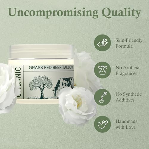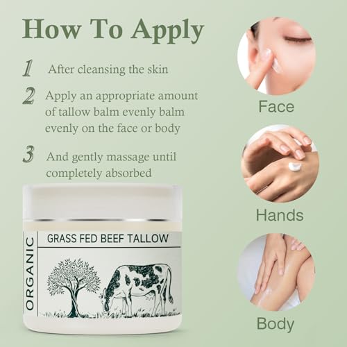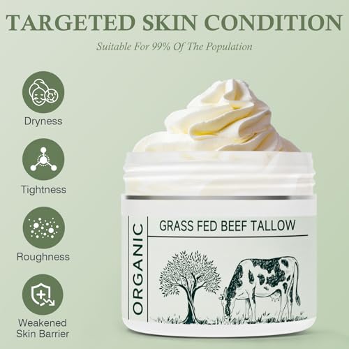 HYDRATION AND MOISTURIZATION: Our tallow face moisturizer deeply hydrates the skin, and tallow face moisturizer one application will continue to infuse the skin with the moisture it needs for a long period of time, beef tallow for skin can keep our skin hydrated and radiant all the time. SENSITIVITY RELIEF: Our tallow face moisturizer has a soothing effect on redness and sensitivity of the skin, tallow face moisturizer can reduce the symptoms of sensitivity, beef tallow for skin can relieve discomfort and tallow face moisturizer can also restore the skin to its initial state. MULTI-VITAMIN ENRICHED: Tallow face moisturizer enriched with many of the vitamins your skin needs, our tallow face moisturizer is enriched with Vitamins A,D,E,K and B12 to replenish your skin with nutrients that beef tallow for skin will revitalize your skin's youthfulness and vitality. SCOPE OF APPLICATION: Our beef tallow for skin not only plays a major role in the face, you can see the obvious improvement effect if you use our beef tallow for skin, but also beef tallow for skin can be used on the hands, legs, back and other parts of the body, beef tallow for skin can give all-round hydration and moisturization of the whole body skin. GOOD GIFT: Our tallow face moisturizer is a purely natural product with excellent skin care effects, tallow face moisturizer suitable for both male and female adults, beef tallow for skin is the best gift for your own husband, wife, male and female friends. tallow face moisturizer #2,642 in Beauty & Personal Care ( ) #89 in